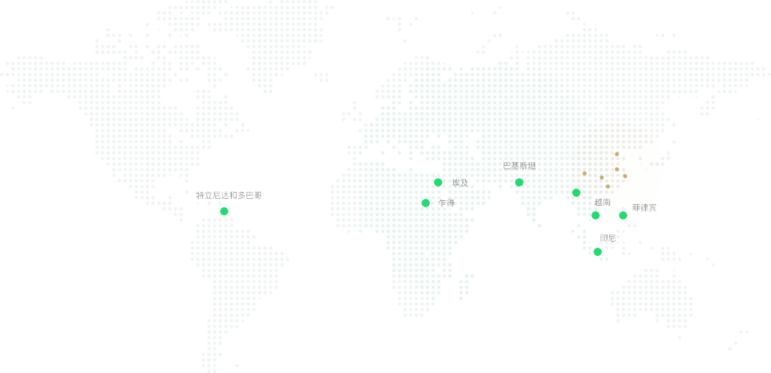 與東南亞、中東、非洲、南美等地區(qū),菲律賓、印尼、緬甸、越南、巴基斯坦、埃及、乍得、特立尼達(dá)和多巴哥等多個(gè)國(guó)家建立了海外業(yè)務(wù)關(guān)系。