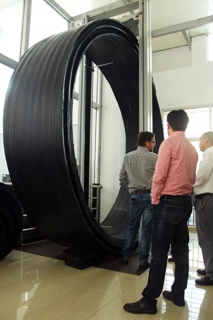 ▲Experts examined the structure of spiral HDPE pipe